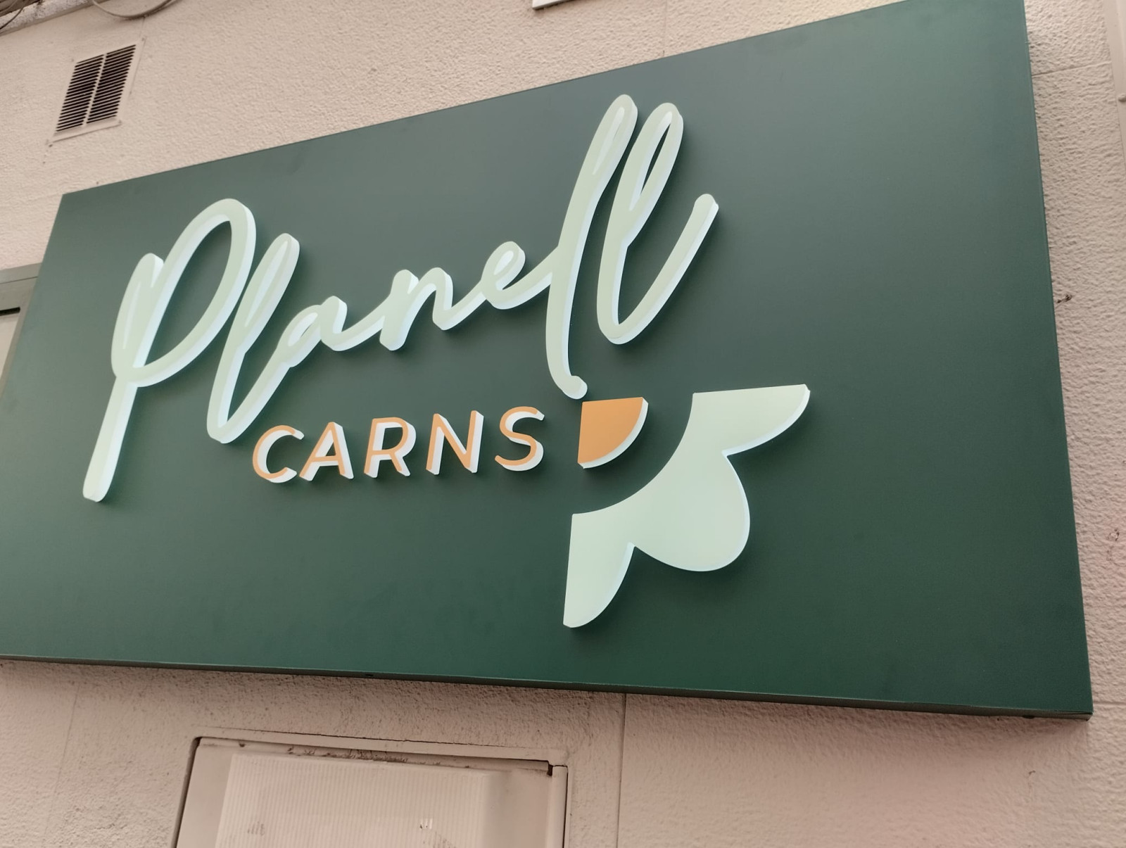 Projecte de Branding de Planell Carns, disseny de logotip i de la identitat corporativa, retolació i vinilat exterior i interior de l'espai així com la seva papereria i materials impresos i el seu vestuari laboral.